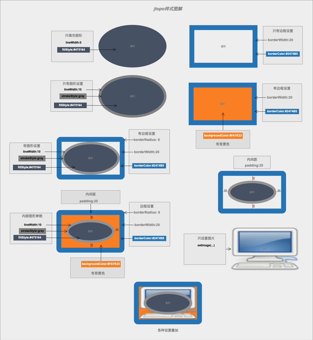// 节点内部图形的填充 和 线条, setStyles和css功能完全等价,只是语义上做了区分: